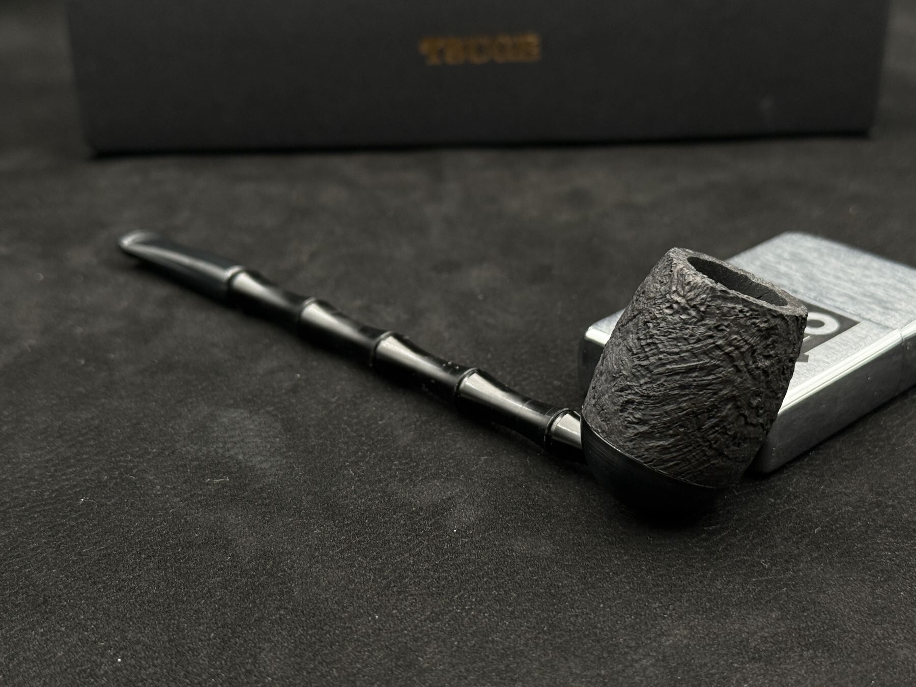 Bu Capito Metal Egg modeli, siyah kumlama yüzeyin yarattığı güçlü doku ile metalin soğuk parlaklığını estetik bir kontrasta dönüştürüyor. Minimal formuna rağmen dikkat çekici bir aura sunan bu tasarım, işçiliğin pürüzlü detaylarda bile kontrol altında olduğunu hissettiriyor. Modern içicilerin tarzına uygun, şehir ruhunu metal ve briar birleşimiyle yorumlayan karakterli bir pipo.