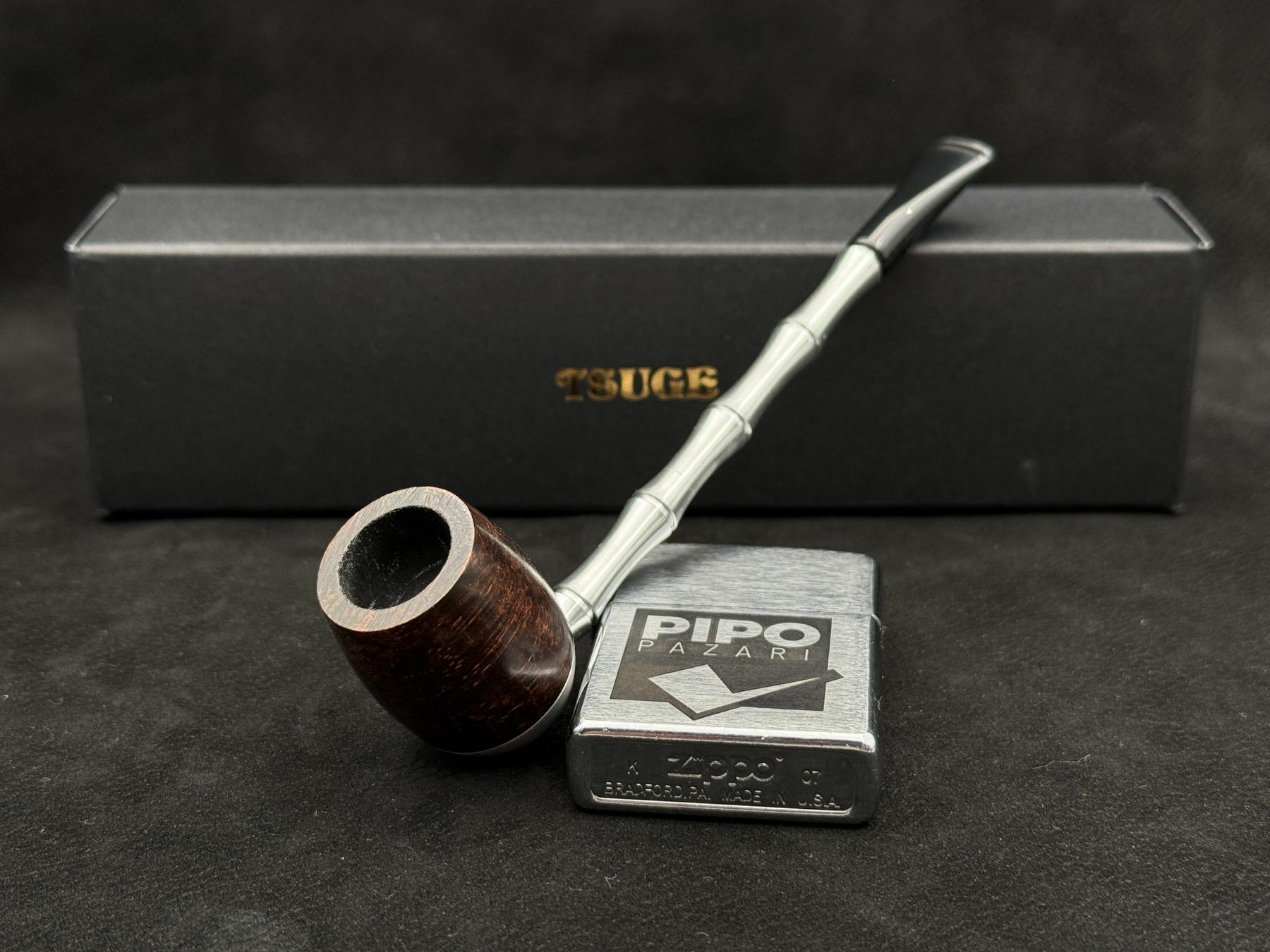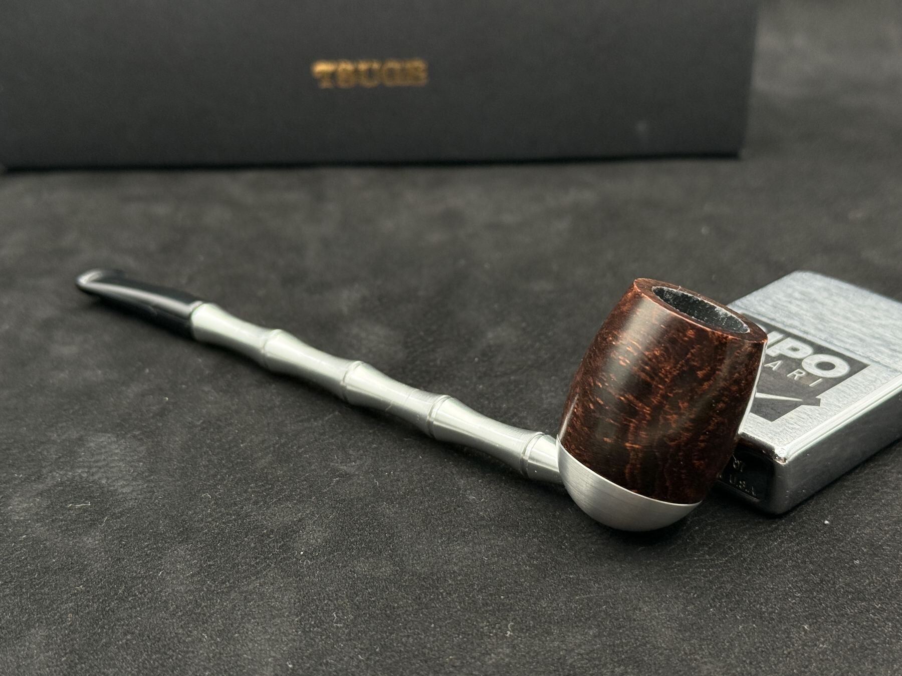 Pürüzsüz gövde, briarın damar hareketini zarif bir ışıltıyla ortaya çıkarıyor. Metal alt yüzey, piponun formunu hem modern hem de kararlı bir çizgiye taşıyor. Kompakt gövdesiyle elde rahat kontrol sağlayan bu model; fonksiyonelliğin, sadeliğin ve modern stilin güzel bir kesişim noktası.