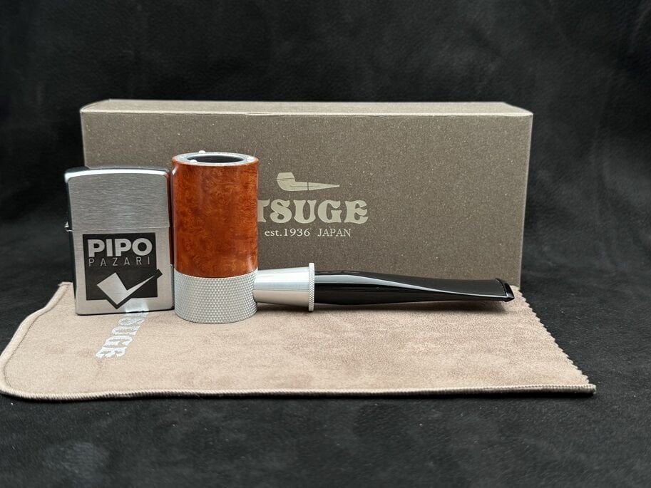 Tsuge bu piposunun hazne altı ve shank kısmını alüminyumdan üretmiştir. Vidalı olarak sökülebilen briar haznesi ve diğer aksamlarıyla seyahatlerinizde ve çantanızda yer tutmadan üst kalite bir pipo içimi deneyimine sahip olacaksınız.