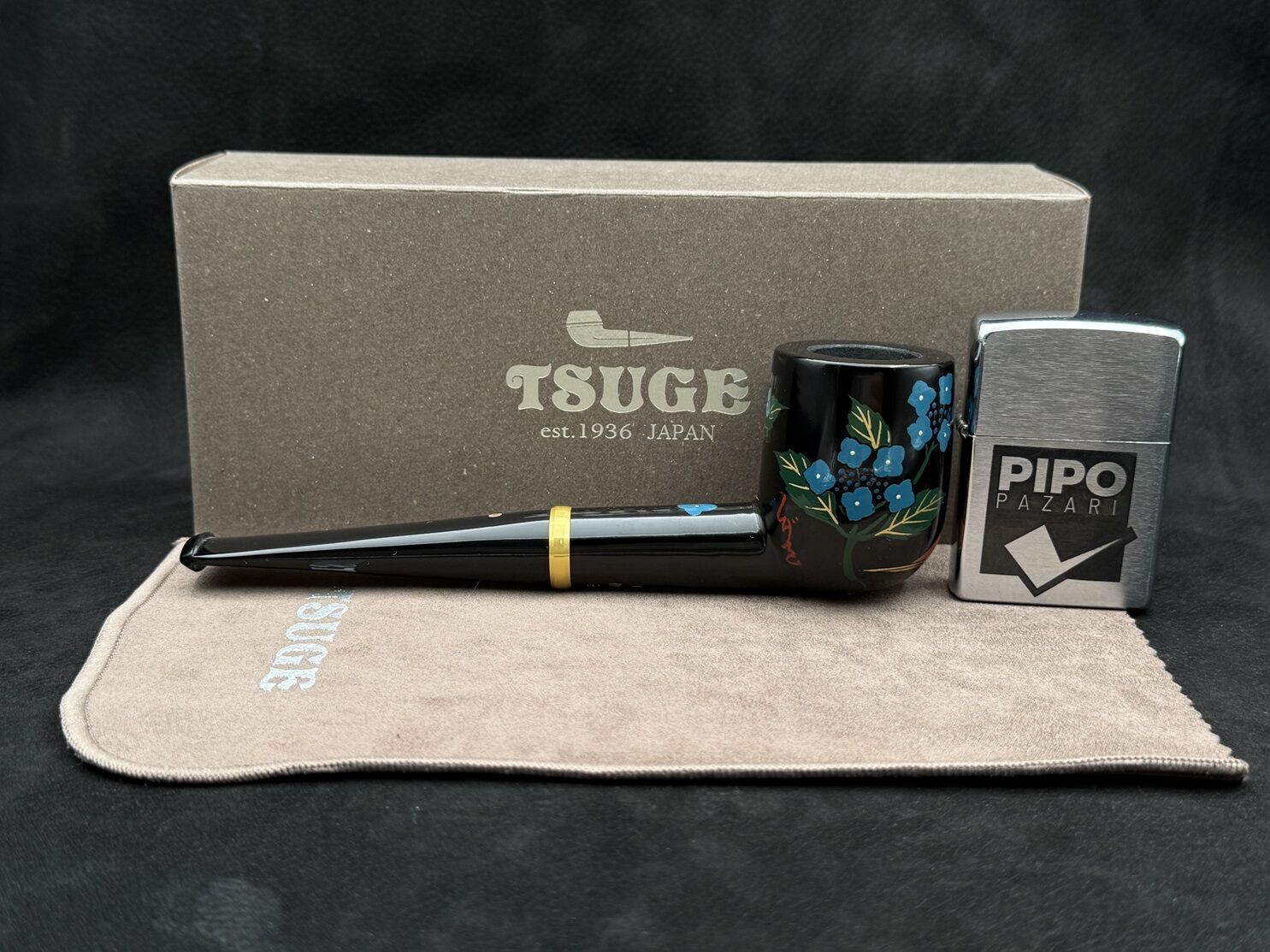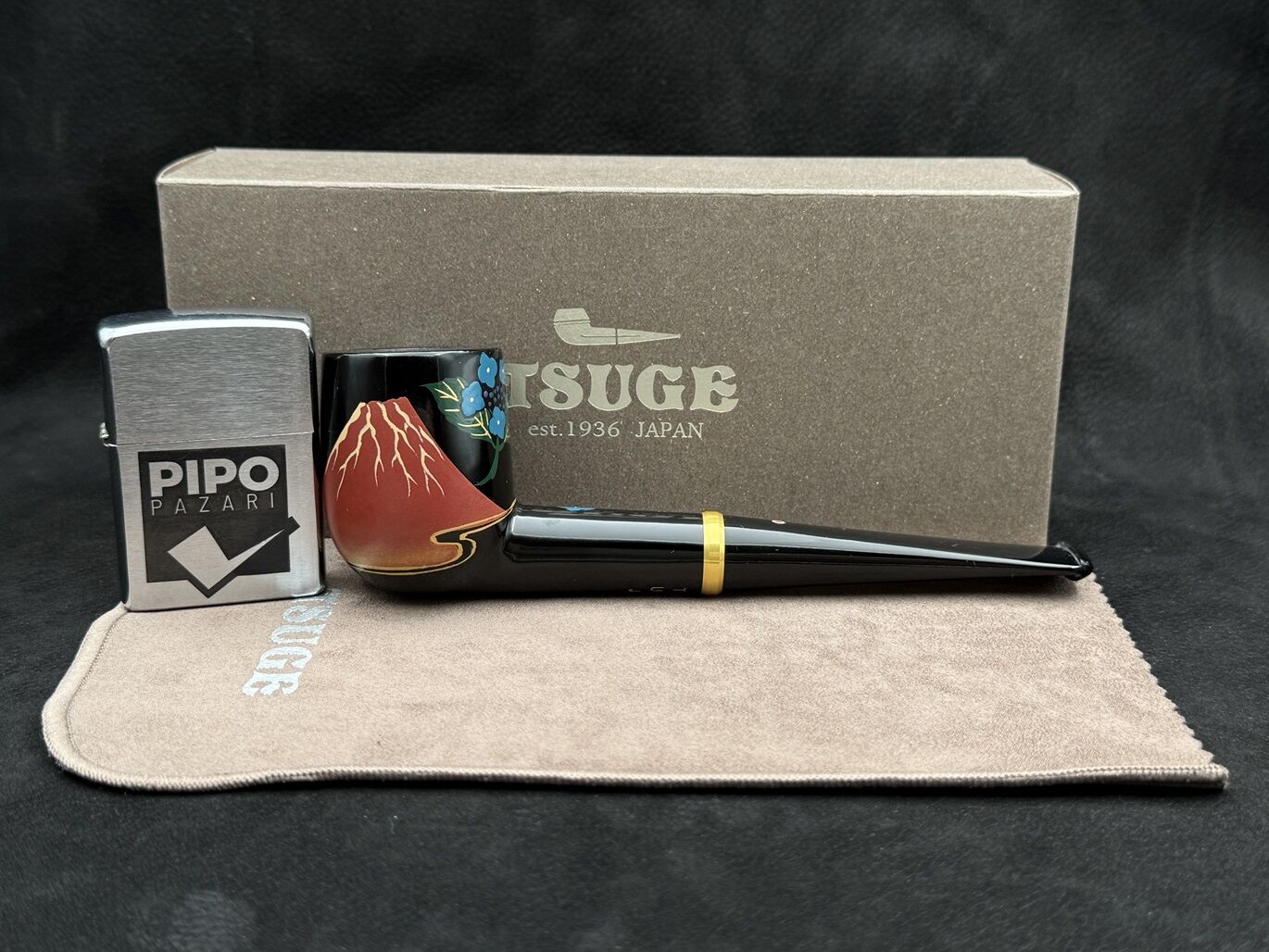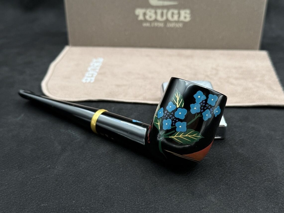 Tsuge’nin Urushi serisinin özel modellerinden Hydrangea & Mt. Fuji, Japonya’nın simgelerinden Mt. Fuji’nin görkemini ve renkli ortanca (hydrangea) çiçeklerini bir araya getirir. Parlak Urushi lakası üzerine ustaların zarif fırça darbeleriyle işlenen bu motifler, her pipoya eşsiz bir estetik değer katar.