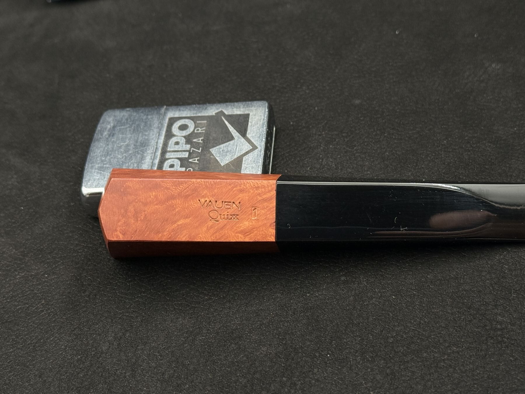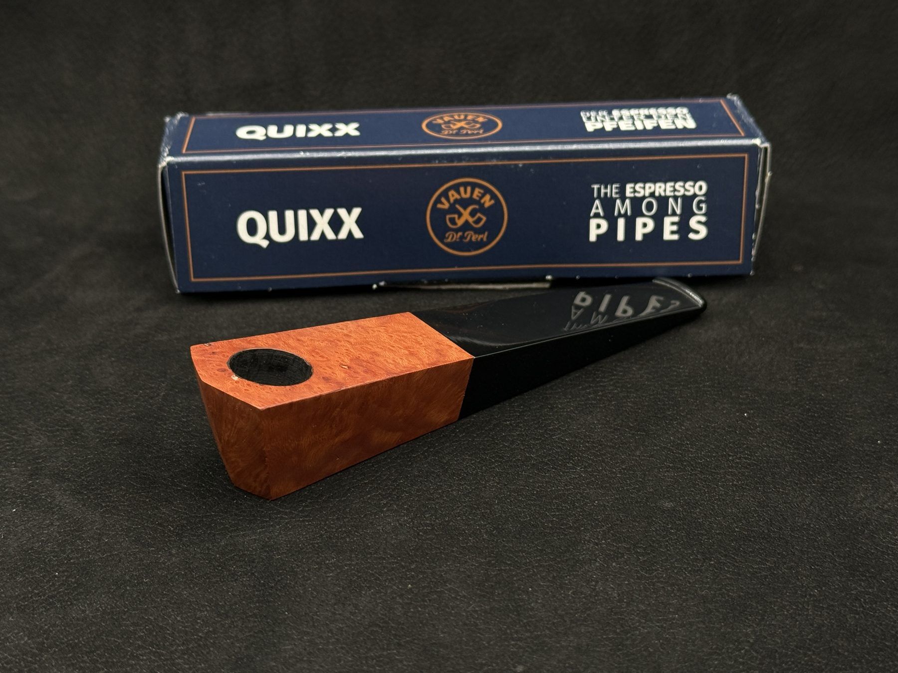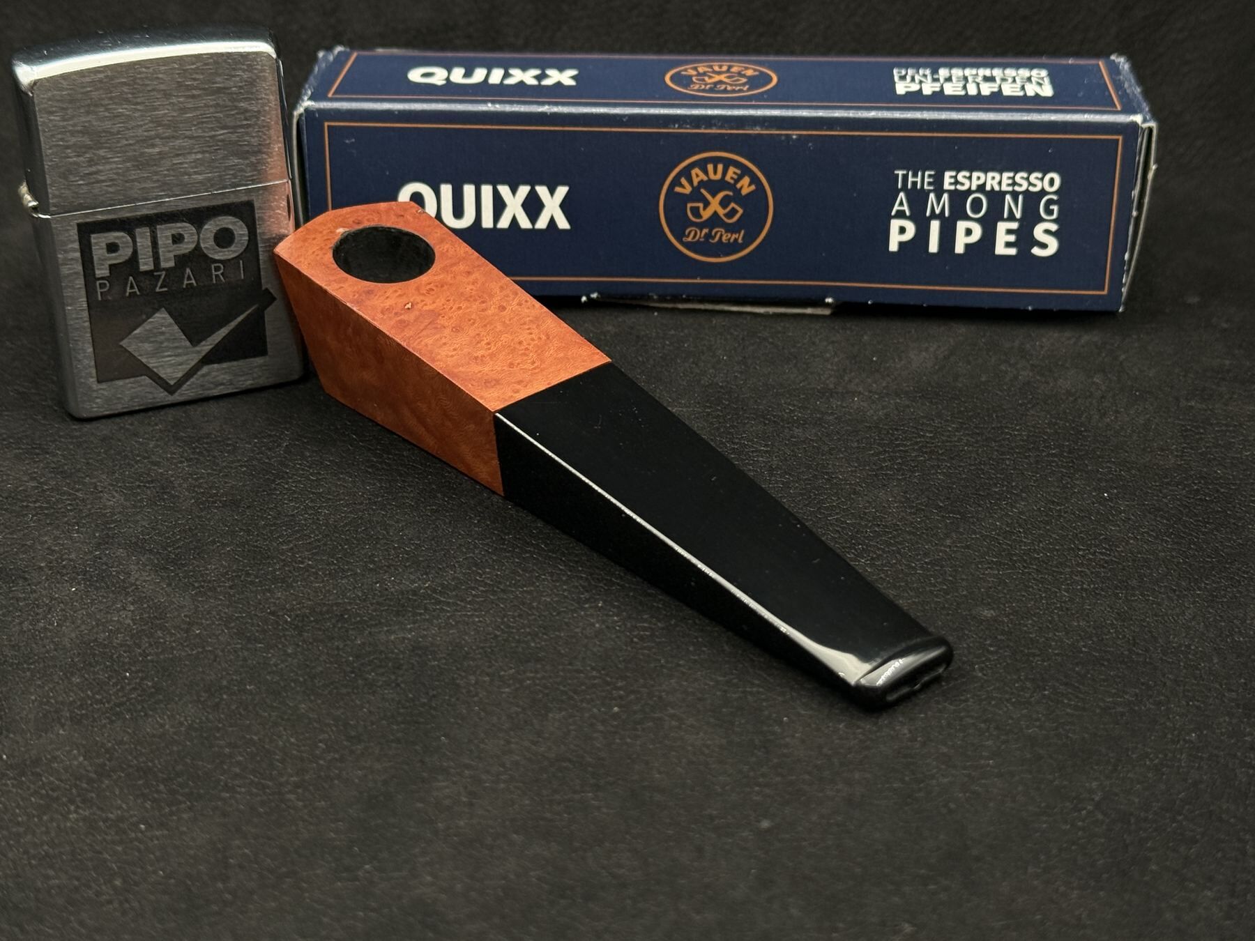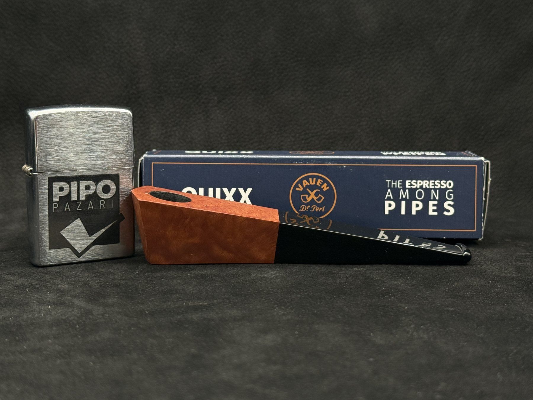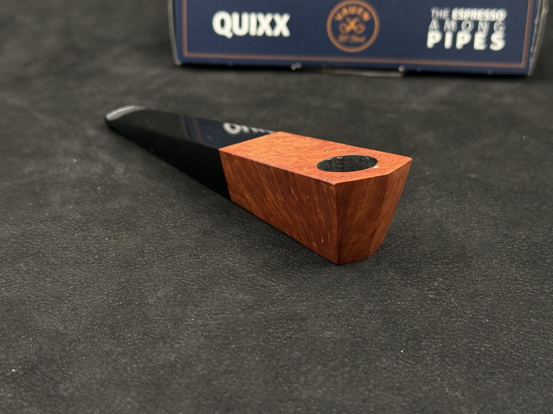 9 mm filtre uyumu, bu ölçekte bir pipoda alışılmışın üzerinde bir konfor sağlar. Mini boyutuna rağmen filtre desteği sunması, daha dengeli ve kuru bir içim karakteri oluşturur. Akrilik ağızlık, parlak siyah yüzeyi ve dayanıklılığıyla gövdenin sıcak tonuna modern bir denge getirir. Yeni ve kutulu olarak sunulan QUIXX, kısa molalar, seyahat kullanımı veya koleksiyonda farklı bir form arayanlar için kompakt ama karakterli bir Alman yorumu niteliğindedir.