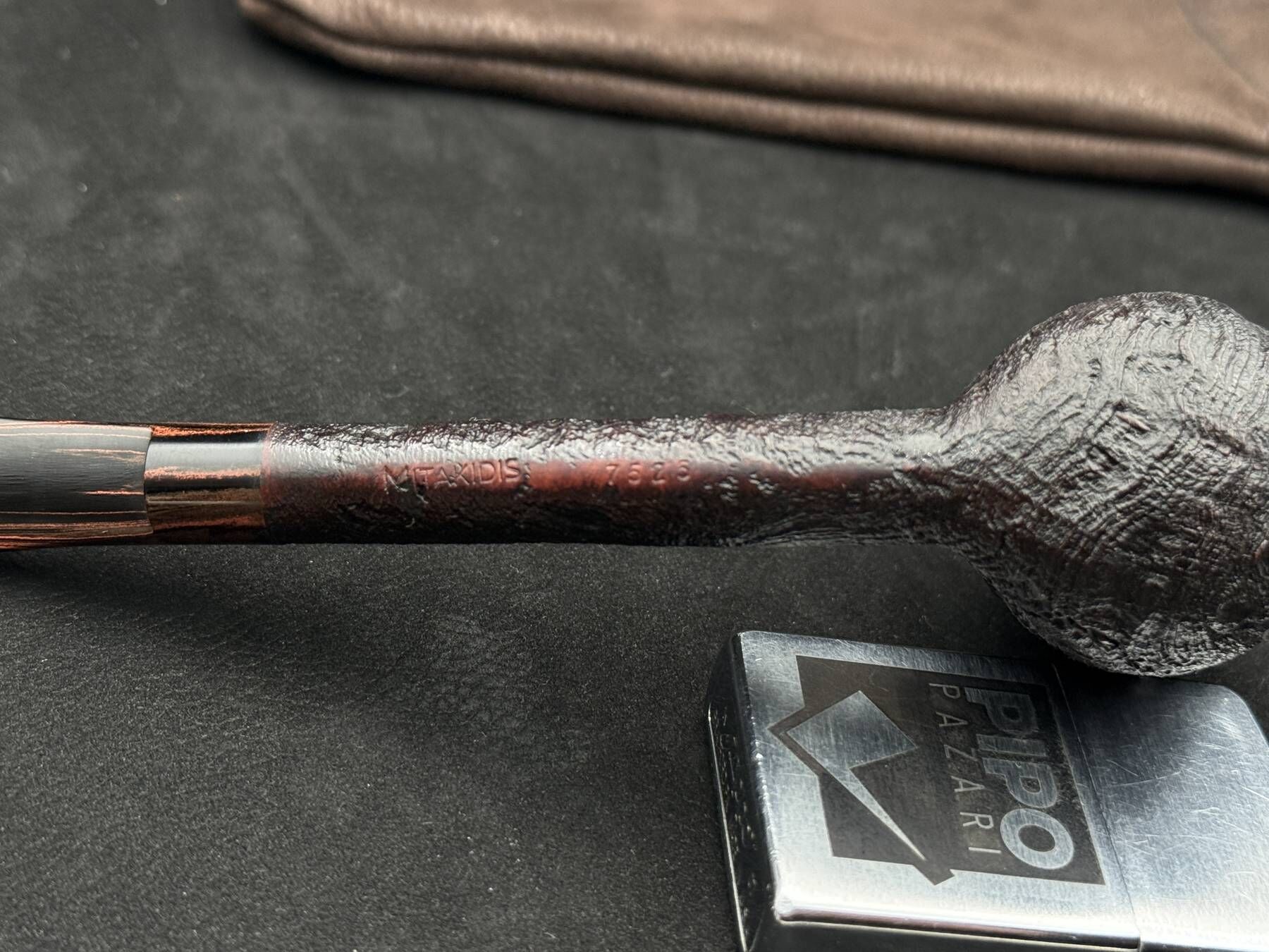 Yorgos Mitakidis, özellikle kumlama bitirişte gösterdiği ustalıkla tanınan bir Yunan pipo ustasıdır. Çalışmalarında briar ağacının doğal yapısını ön plana çıkaran derin yüzey dokuları, pipolarına güçlü bir kimlik kazandırır. Ustanın üretim anlayışı, form ve yüzey arasında dengeli bir uyum yakalamaya dayanır.