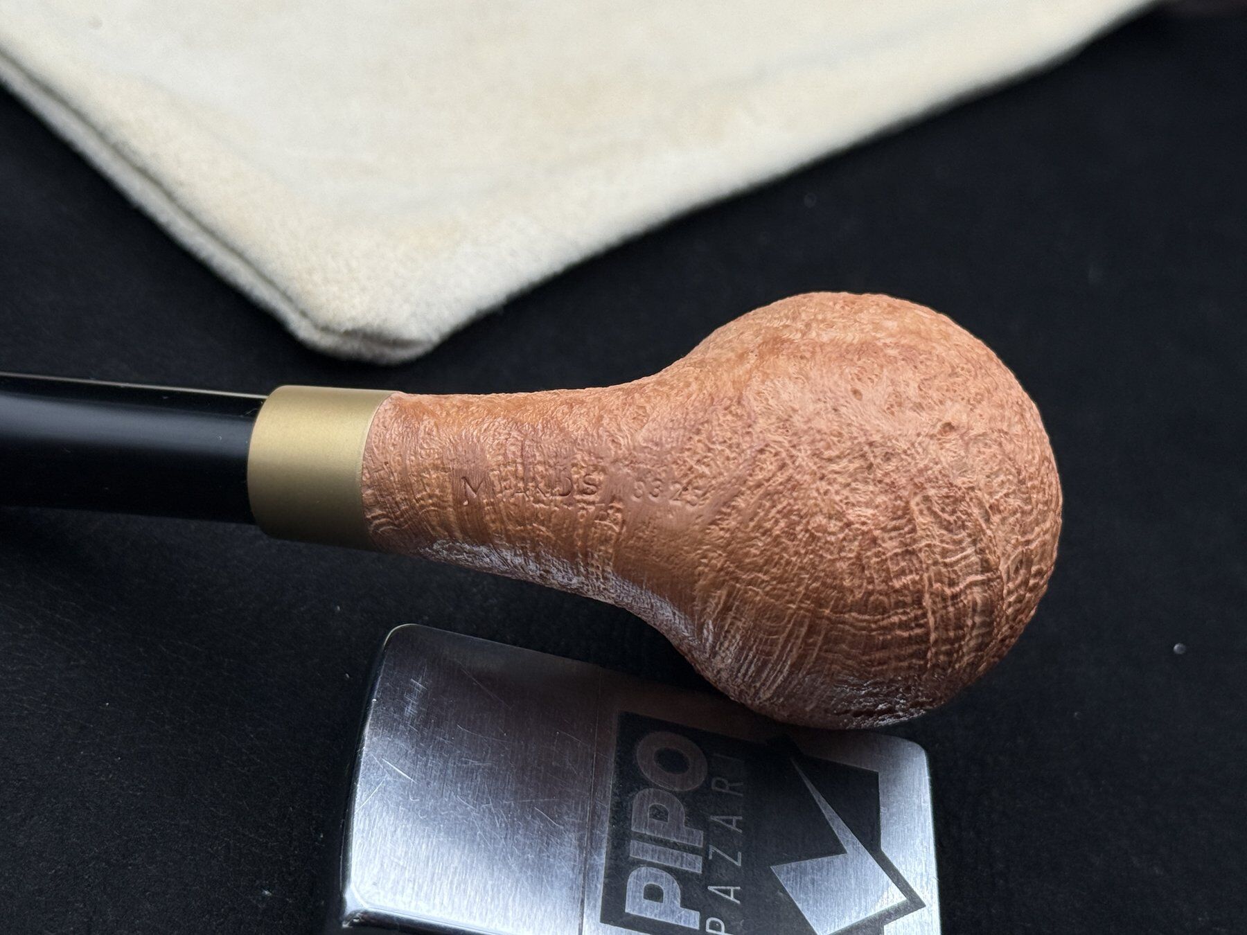 Özellikle dikkat çeken unsur, 9 mm filtre uyumlu oluşu. Yorgos, filtreli pipoları çok sık üretmeyen bir usta; bu model, daha çok belirli talepler doğrultusunda şekillenen özel üretim anlayışının bir sonucu. Filtre desteği sayesinde daha kontrollü ve kuru bir içim tercih eden kullanıcılar için ustanın karakteristik form diliyle Alman tarzı konfor yaklaşımı bir araya geliyor. Ebonit ağızlık, yumuşak temas ve dengeli esneklik sağlarken bent açı ile birlikte ağızda doğal bir oturuş sunuyor. Yeni ve özgün üretim olan bu parça, hem Mitakidis koleksiyonerleri hem de 9 mm filtre tercih eden bilinçli kullanıcılar için nadir bulunan bir kombinasyon niteliğinde.