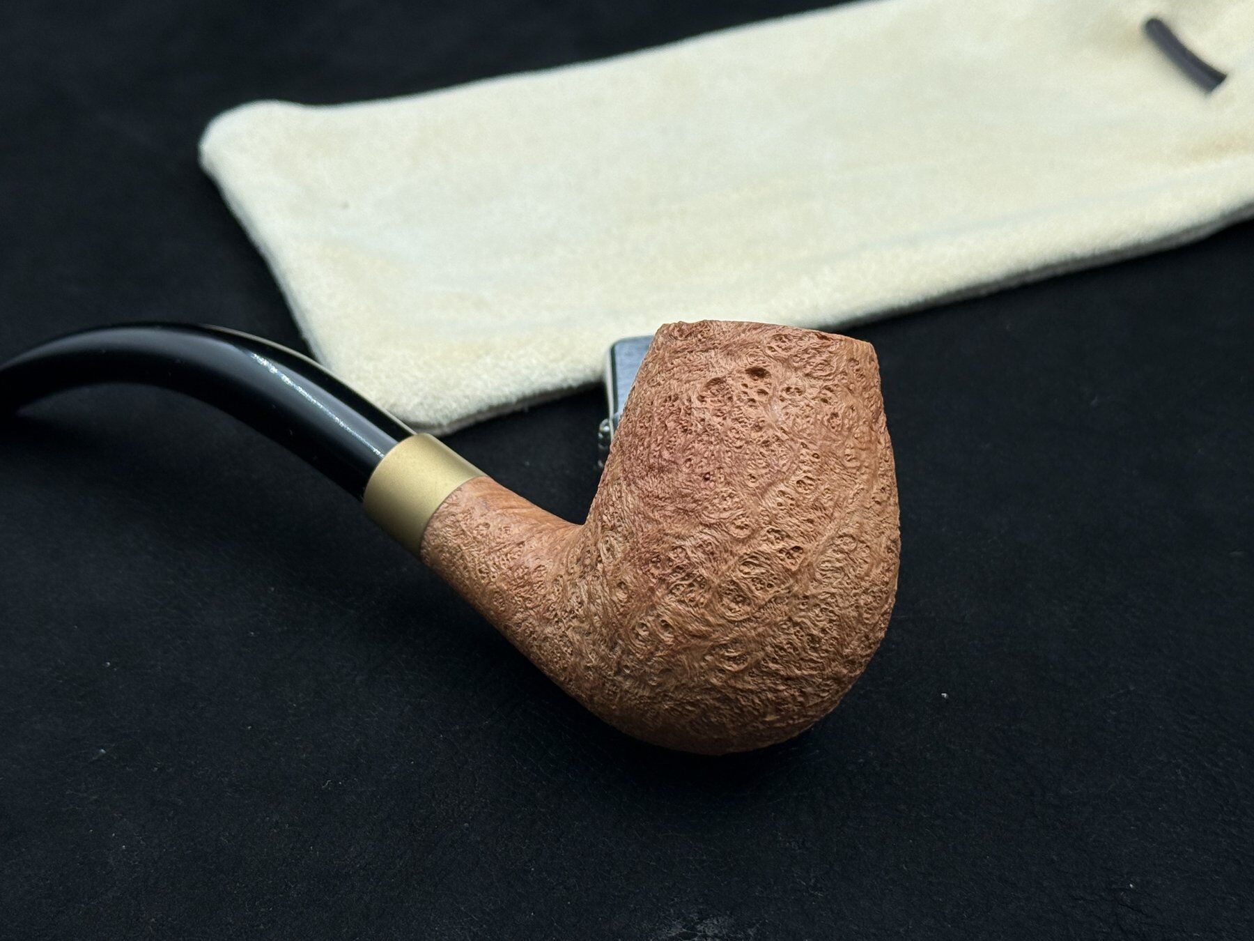 Yunan ustası Yorgos Mitakidis’in elinden çıkan 8325 numaralı piposu, markanın doğal kumlama yaklaşımını yalın ama güçlü bir form üzerinde sergiliyor. Natural sandblast yüzey, briarın yıllık halkalarını derinlikli biçimde ortaya çıkarırken herhangi bir boya müdahalesi olmadan tamamen doğal karakteriyle bırakılmış. Bent formun akıcı hattı, bowl’un dolgun yapısıyla dengeli bir geçiş kuruyor. 58,9 gramlık ağırlığı, ne hafif ne de yorucu bir noktada; elde güven veren ama uzun içimlerde konforu koruyan bir denge sunuyor. Shank üzerindeki pirinç yüzük detayı ise modele sıcak ve zanaatkâr bir vurgu katıyor.
